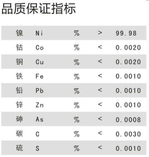 含 量:鎳含量99.9%以上