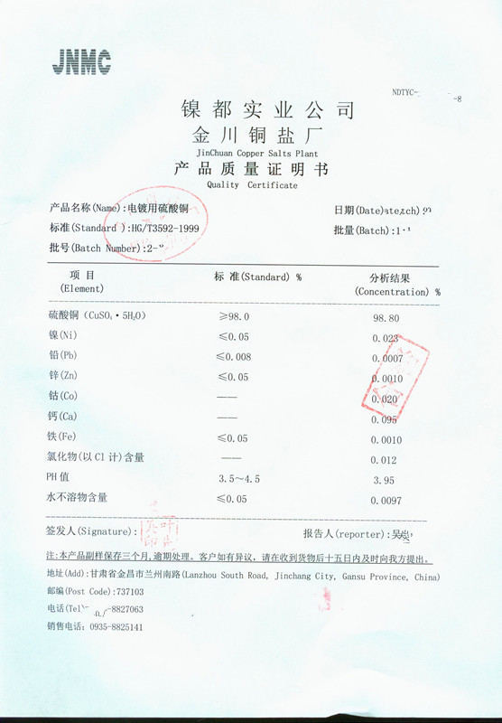 品    牌:金川電鍍級(jí)硫酸銅