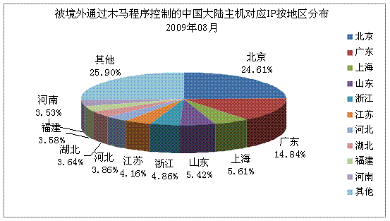 一、河南互聯(lián)網(wǎng)應(yīng)急中心事件處理情況 八月份,我中心共處理2起互聯(lián)網(wǎng)安全事件。國(guó)家互聯(lián)網(wǎng)應(yīng)急中心發(fā)現(xiàn)我省某地市政府網(wǎng)站掛馬。我中心及時(shí)將事件信息通報(bào)相關(guān)電信運(yùn)營(yíng)企業(yè),要求相關(guān)電信企業(yè)及時(shí)協(xié)調(diào)處理,網(wǎng)站現(xiàn)已恢復(fù)正常。 二、基礎(chǔ)電信運(yùn)營(yíng)企業(yè)及網(wǎng)絡(luò)安全企業(yè)上報(bào)情況 八月份,我省各基礎(chǔ)電信運(yùn)營(yíng)企業(yè)及網(wǎng)絡(luò)安全企業(yè)共上報(bào)網(wǎng)絡(luò)安全事件84起,其中河南電信公司上報(bào)11起,河南移動(dòng)公司上報(bào)3起,河南天融信上報(bào)63起,河南山谷上報(bào)1起,世紀(jì)信安上報(bào)6起。相關(guān)電信運(yùn)營(yíng)企業(yè)已及時(shí)處理所上報(bào)安全事件。 三、河南省網(wǎng)絡(luò)安全事件分析 。ㄒ唬┠抉R事件數(shù)據(jù) 2009年8月1日至31日,CNCERT/CC對(duì)當(dāng)前流行的木馬程序的活動(dòng)狀況進(jìn)行了抽樣監(jiān)測(cè),發(fā)現(xiàn)我國(guó)大陸地區(qū)23398個(gè)IP 地址對(duì)應(yīng)的主機(jī)被其他國(guó)家或地區(qū)通過(guò)木馬程序秘密控制,其分布情況如下圖所示,最多的地區(qū)為北京市(24.61%)。其中,我省受控IP地址為826個(gè),排名第10。 ![]() 另外,根據(jù)國(guó)內(nèi)木馬控制服務(wù)器IP地址分布情況看,廣東最多,達(dá)7489個(gè),河南排第5,共有3651個(gè)。 。ǘ┙┦W(wǎng)絡(luò)情況 2009年8月1日至31日,CNCERT/CC對(duì)僵尸網(wǎng)絡(luò)的活動(dòng)狀況進(jìn)行了抽樣監(jiān)測(cè),發(fā)現(xiàn)國(guó)內(nèi)699個(gè)IP地址對(duì)應(yīng)的主機(jī)被利用作為僵尸網(wǎng)絡(luò)控制服務(wù)器,僵尸網(wǎng)絡(luò)主機(jī)數(shù)目有117852個(gè)。其中,我省僵尸網(wǎng)絡(luò)控制服務(wù)器數(shù)量為42個(gè),僵尸網(wǎng)絡(luò)所感染的主機(jī)數(shù)量為6476個(gè)。 1、僵尸網(wǎng)絡(luò)控制服務(wù)器數(shù)量按地區(qū)排名 下圖是根據(jù)僵尸網(wǎng)絡(luò)控制服務(wù)器的數(shù)量,按地區(qū)繪制的Top10分布圖。我省8月份僵尸網(wǎng)絡(luò)控制服務(wù)器數(shù)量在全國(guó)排第5位。 ![]() 2、僵尸網(wǎng)絡(luò)所感染主機(jī)數(shù)量按地區(qū)排名 下圖是根據(jù)僵尸網(wǎng)絡(luò)所感染主機(jī)的數(shù)量,按地區(qū)繪制的Top10分布圖。從圖中可以看到,我省僵尸網(wǎng)絡(luò)所感染主機(jī)數(shù)量在全國(guó)排第8位。 ![]() 3、僵尸網(wǎng)絡(luò)控制服務(wù)器使用的控制端口分布 下圖是僵尸網(wǎng)絡(luò)控制服務(wù)器使用的控制端口分布圖,從圖中可以看到,56.38%的僵尸網(wǎng)絡(luò)控制服務(wù)器通過(guò)6667端口對(duì)目標(biāo)計(jì)算機(jī)進(jìn)行控制。 ![]() (三)網(wǎng)頁(yè)篡改情況 2009年8月1日至31日,我國(guó)大陸地區(qū)被篡改網(wǎng)站的數(shù)量為3693個(gè),其中,我省被篡改網(wǎng)站數(shù)量為402個(gè),排名全國(guó)第2。 ![]() 網(wǎng)頁(yè)篡改事件中,排名前三位的攻擊者的名稱(chēng)分別是:用幸福觸摸憂傷@W.S.H,攻擊511次;雨夜孤魂,攻擊200次;Killer,攻擊74次。 。ㄋ模⿶阂獯a捕獲情況 1、惡意代碼捕獲次數(shù)排名 下表是通過(guò)蜜網(wǎng)捕獲的惡意代碼樣本及其變種數(shù)量前10名: