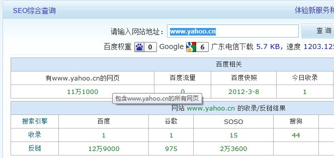 今天突然想看看百度和谷歌給其它著名網(wǎng)站的網(wǎng)站權重評分是多少,查了一下雅虎中國的權重,見下圖: