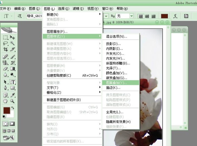 選擇菜單“圖層”,然后選擇“圖層樣式”,再根據(jù)個人愛好選擇項目.