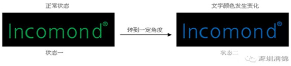 肉眼直接觀察防偽標簽時,Incomond正視為綠色,轉(zhuǎn)動約50度視角之后,直接變?yōu)樗{色Incomond